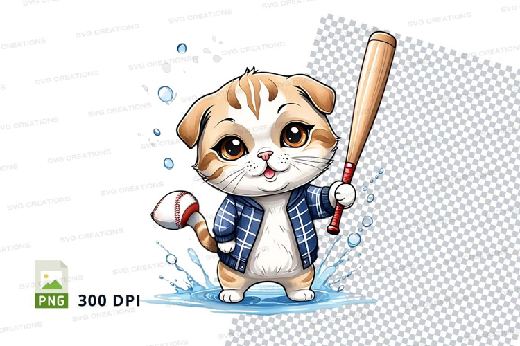 Cartoon Funny Animal Baseball Sport Water Splash Bat Cat