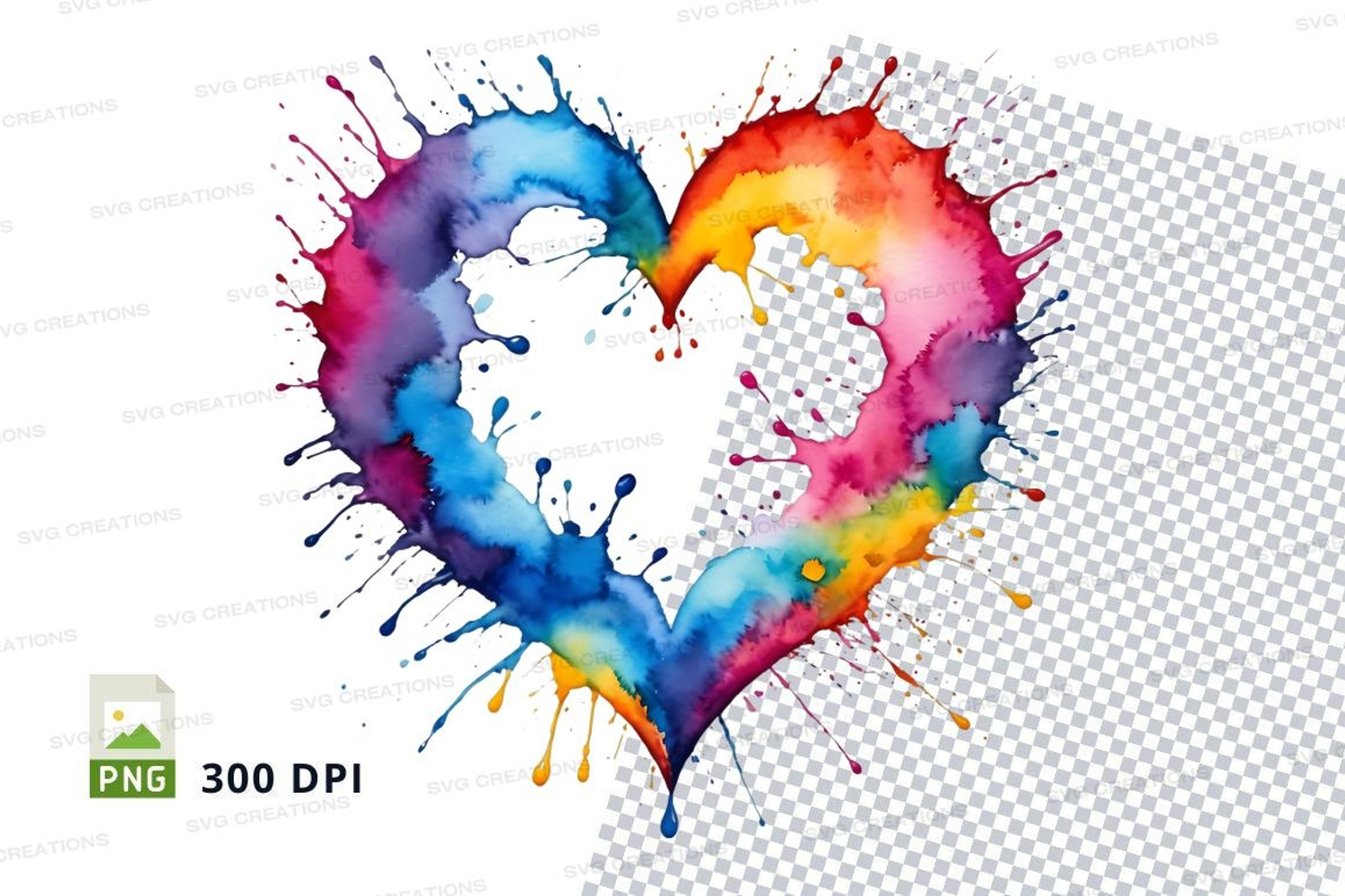 Rainbow heart splatter