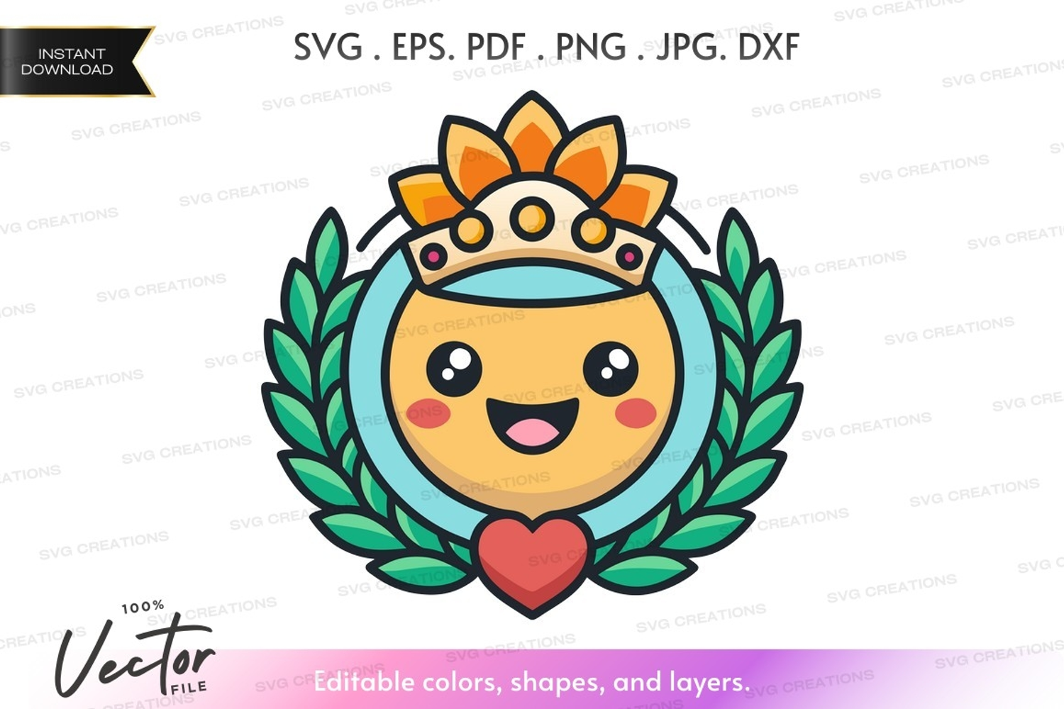 Cartoon Cute Heart Crown Kawaii Queen Laurel Wreath Vector Silhouette