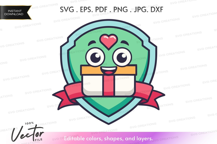 Happy Ribbon Heart Shield Gift Gift Box Vector Silhouette