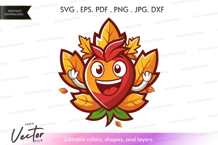 Cartoon Funny Nature Colorful Silhouette Autumn Fall Leaves Face Season