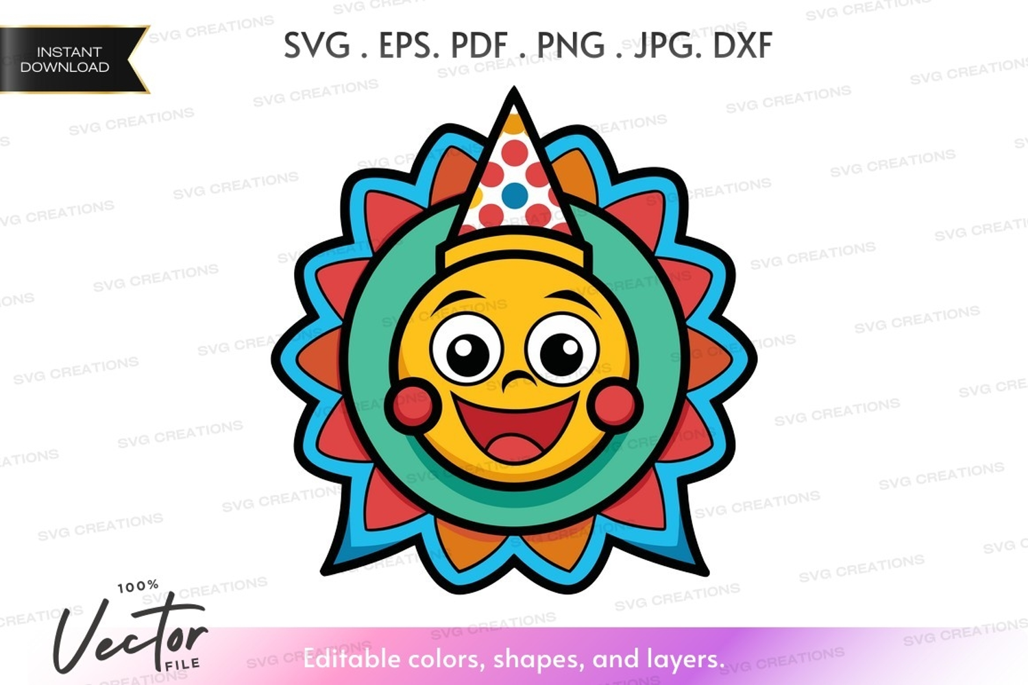 Vector Party Smile Sun Birthday Celebration Colorful Silhouette Hat Cheerful
