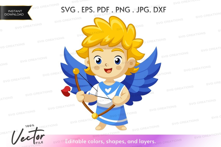 Cartoon Vector Love Heart Golden Silhouette Arrow Bow Angel Cupid