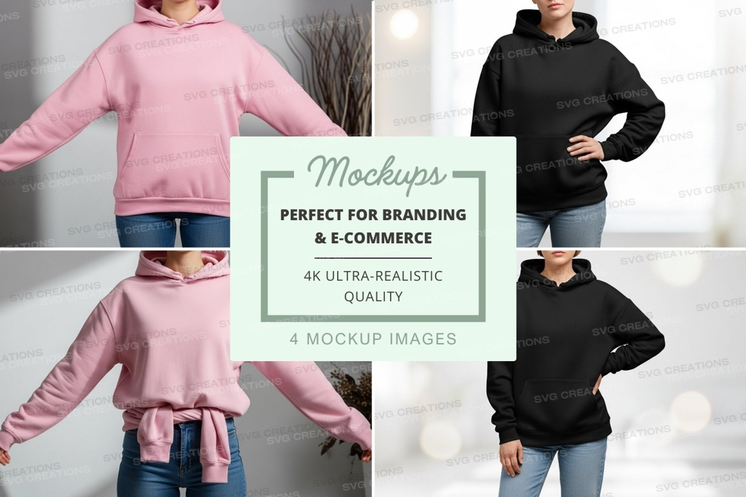 Fashion Design Clothing Mockup Apparel Model Front View Hooded Sweatshirt Black Sweatshirt Pink Sweatshirt