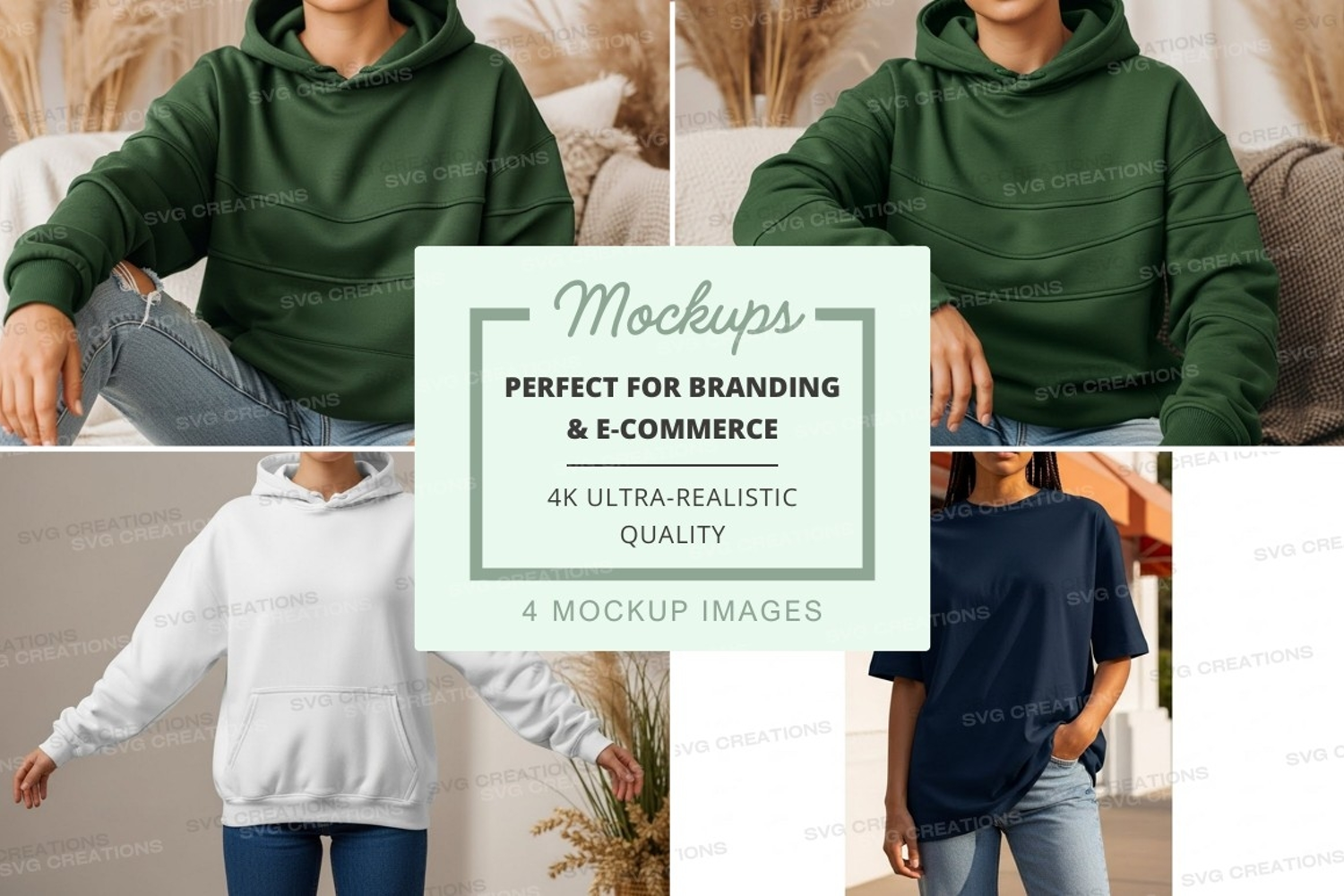 Fashion T-shirt Mockup Model Hoodie White T-shirt Casual Wear White Hoodie Green Hoodie Navy Blue T-shirt