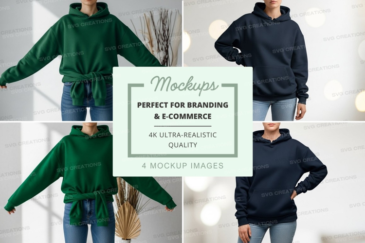 Fashion Clothing Mockup Model Front View Back View Casual Wear Green Sweatshirt Navy Blue Sweatshirt Hooded Sweatshirts