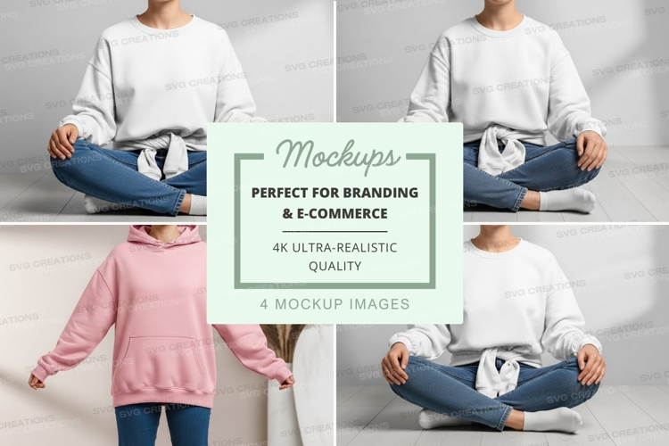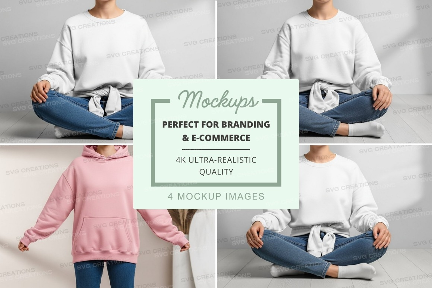 Mockup Blue Jeans Hoodies Neutral Background Casual Wear White Sweatshirt Sweatshirts Pink Sweatshirt Relaxed Pose