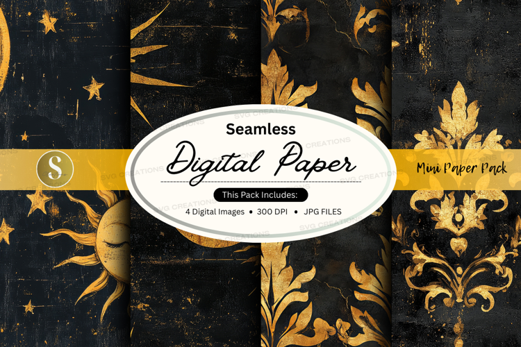 Gold Patterns Digital Paper Seamless 300 Dpi Dark Background Jpeg Files