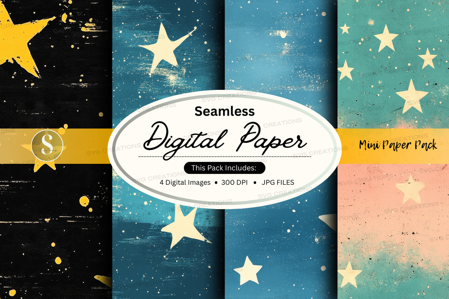 Backgrounds Digital Paper Seamless Patterns Stars 300 Dpi Night Sky Starry Night Jpeg Files