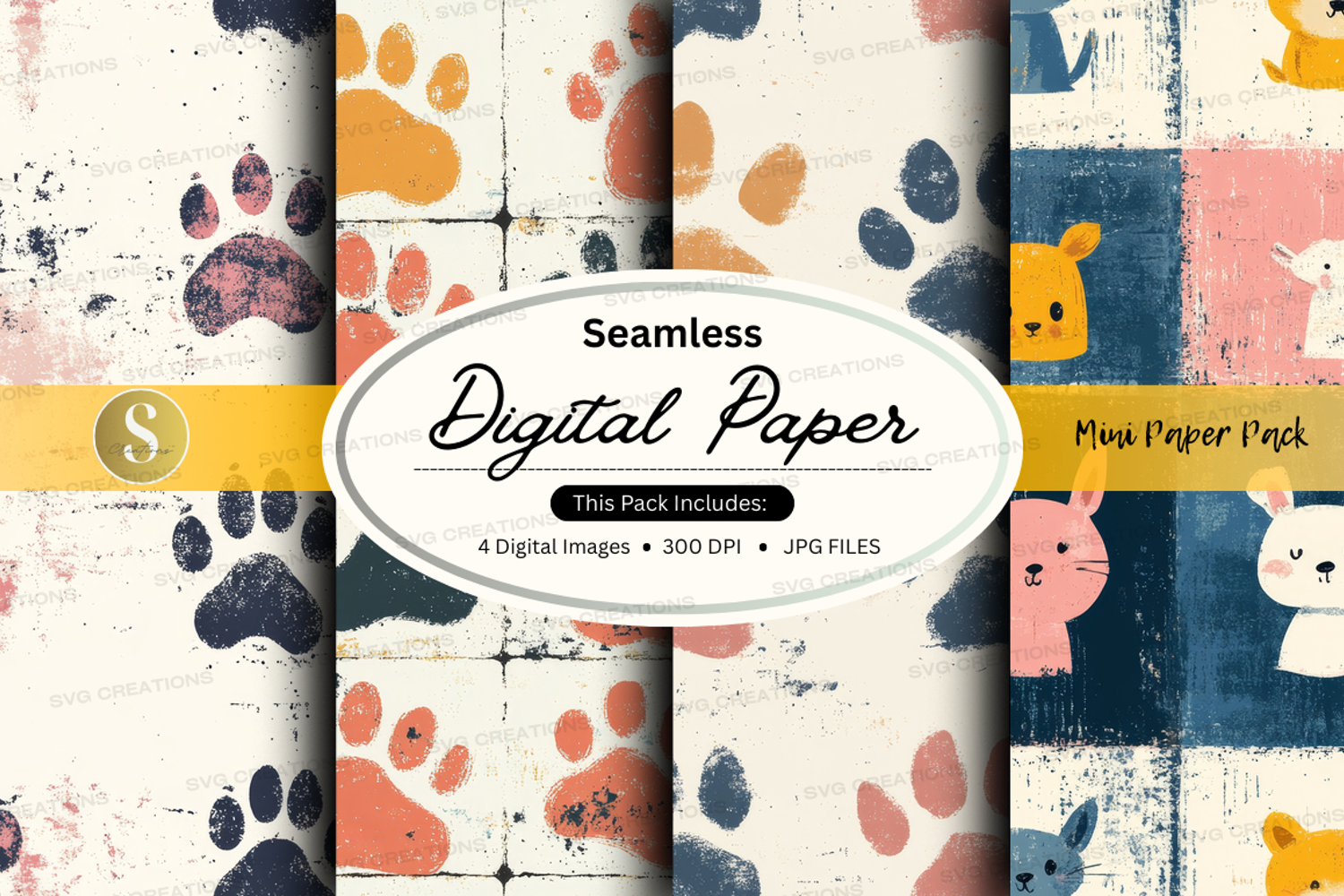 Digital Paper Seamless Crafting 300 Dpi Paw Prints Pastel Colors Animal Illustrations Jpg Files