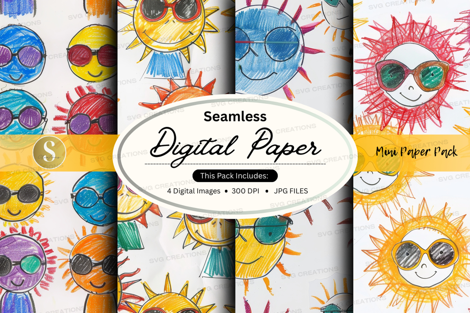 Hand-drawn Summer Sun Pattern Digital Paper Background Seamless Sunglasses