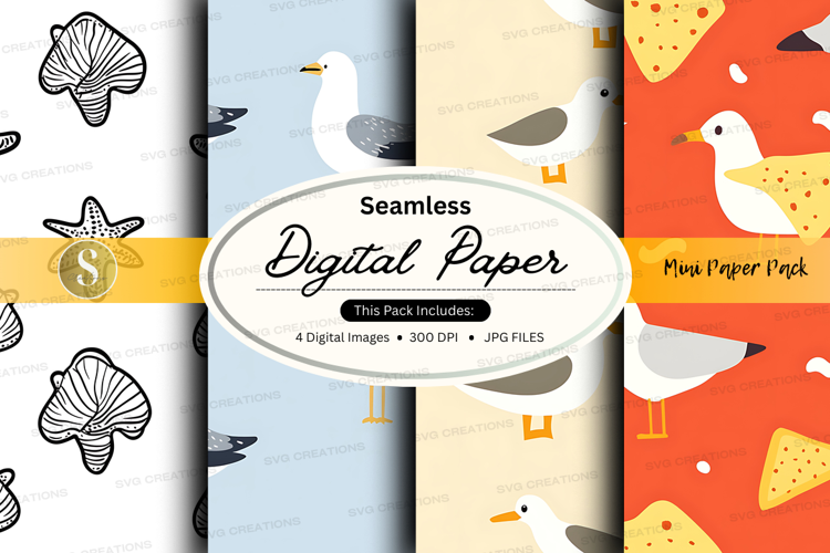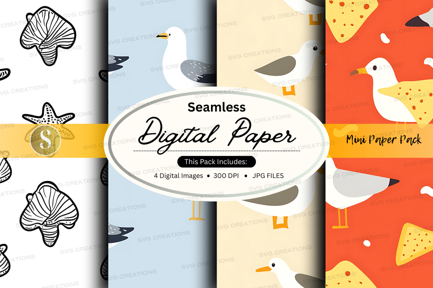 Digital Paper Seamless Patterns High Resolution Digital Images Seashells Seagulls Jpg Files Beach Theme