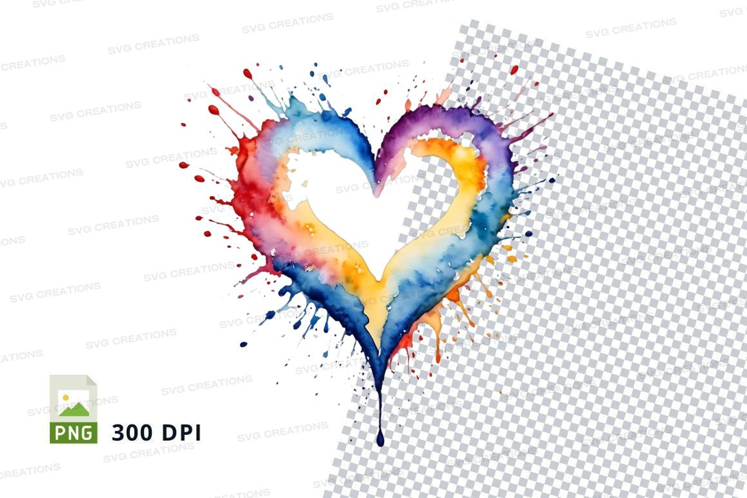 Watercolor Love Art Colorful Heart Lavender Splash Wreath Rainbow Diversity