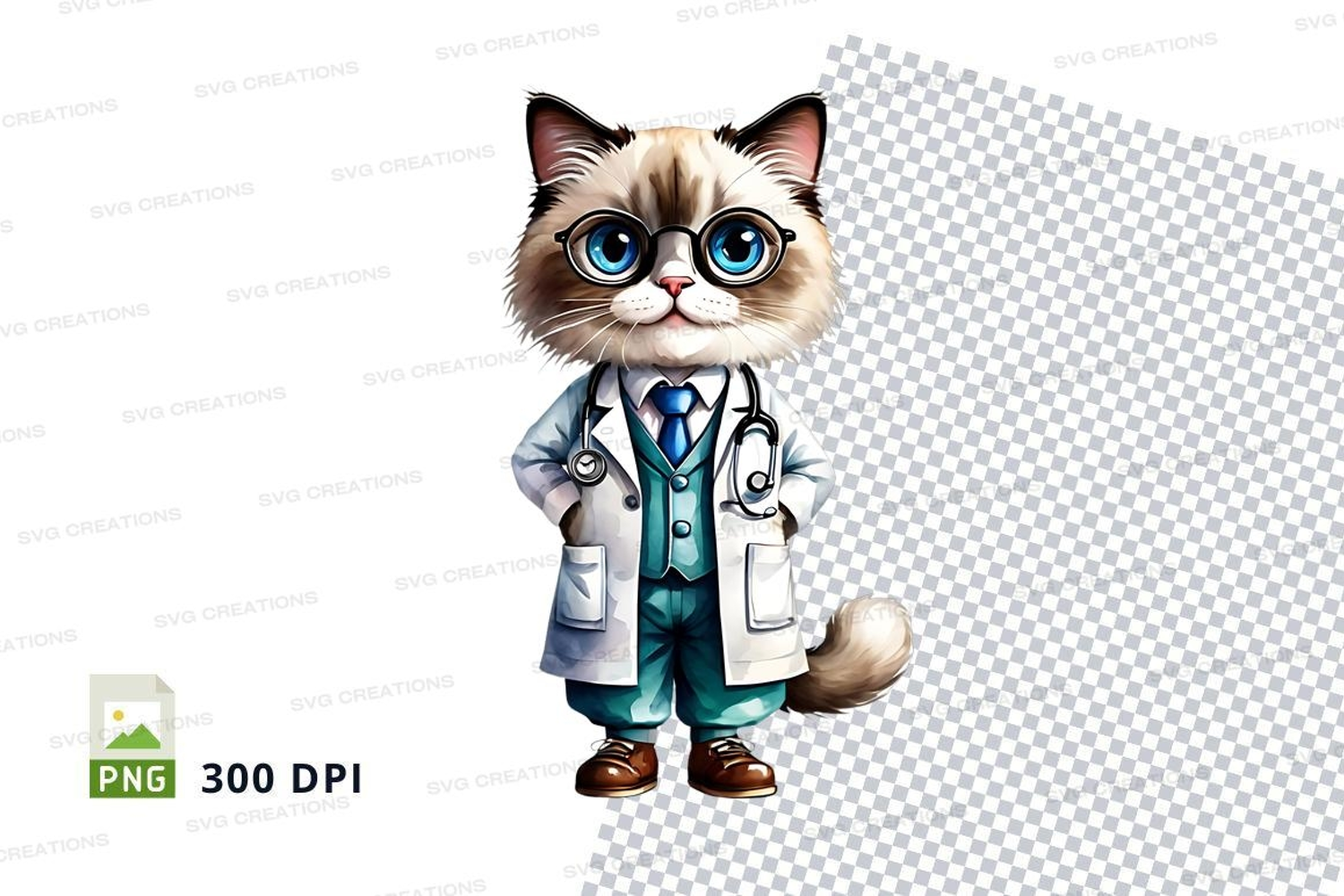 Animal Clipart Cat Stethoscope Glasses Medical Doctor Humor Vet Lab Coat