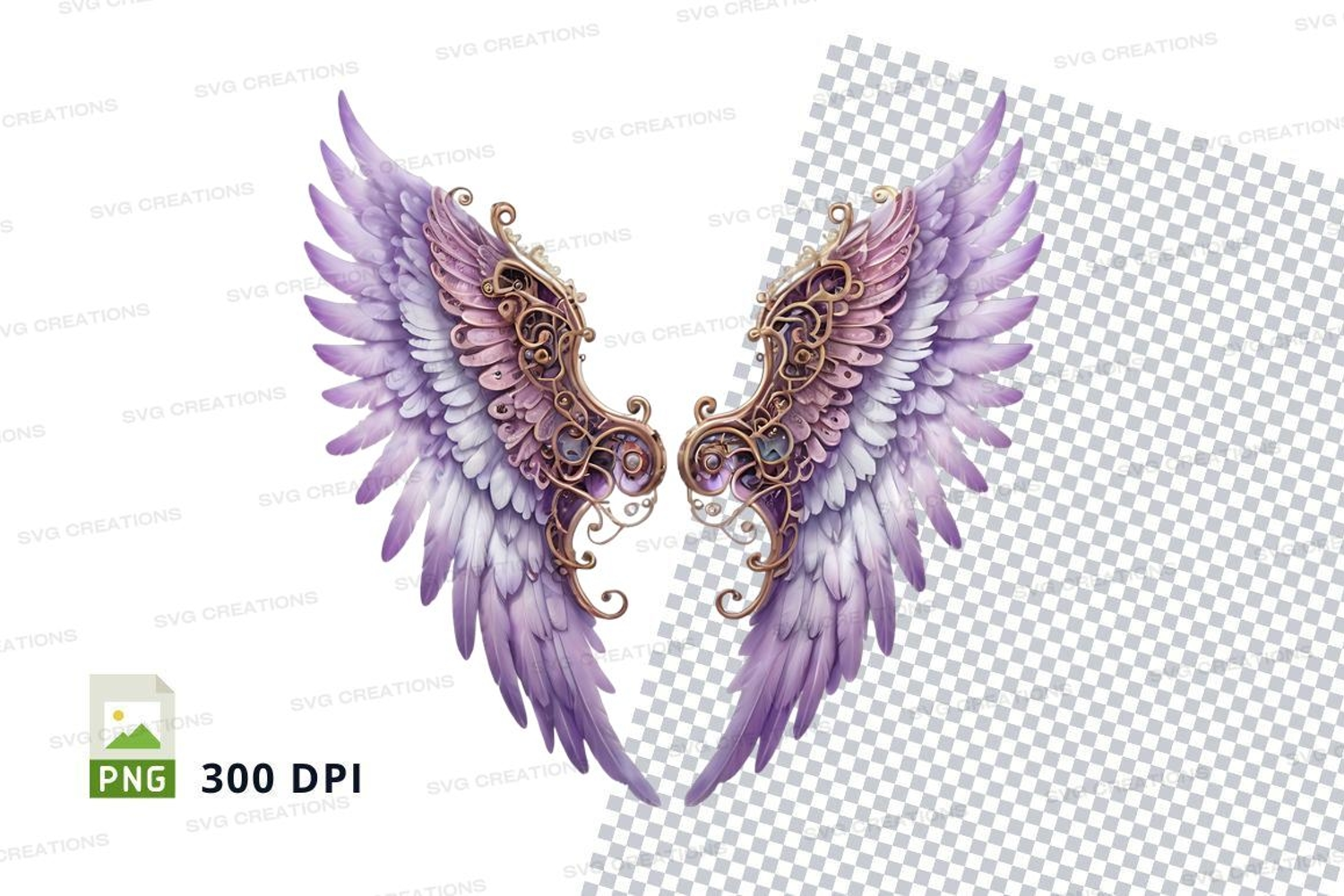 Design Purple Feathers Mechanical Steampunk Intricate Angel Wings