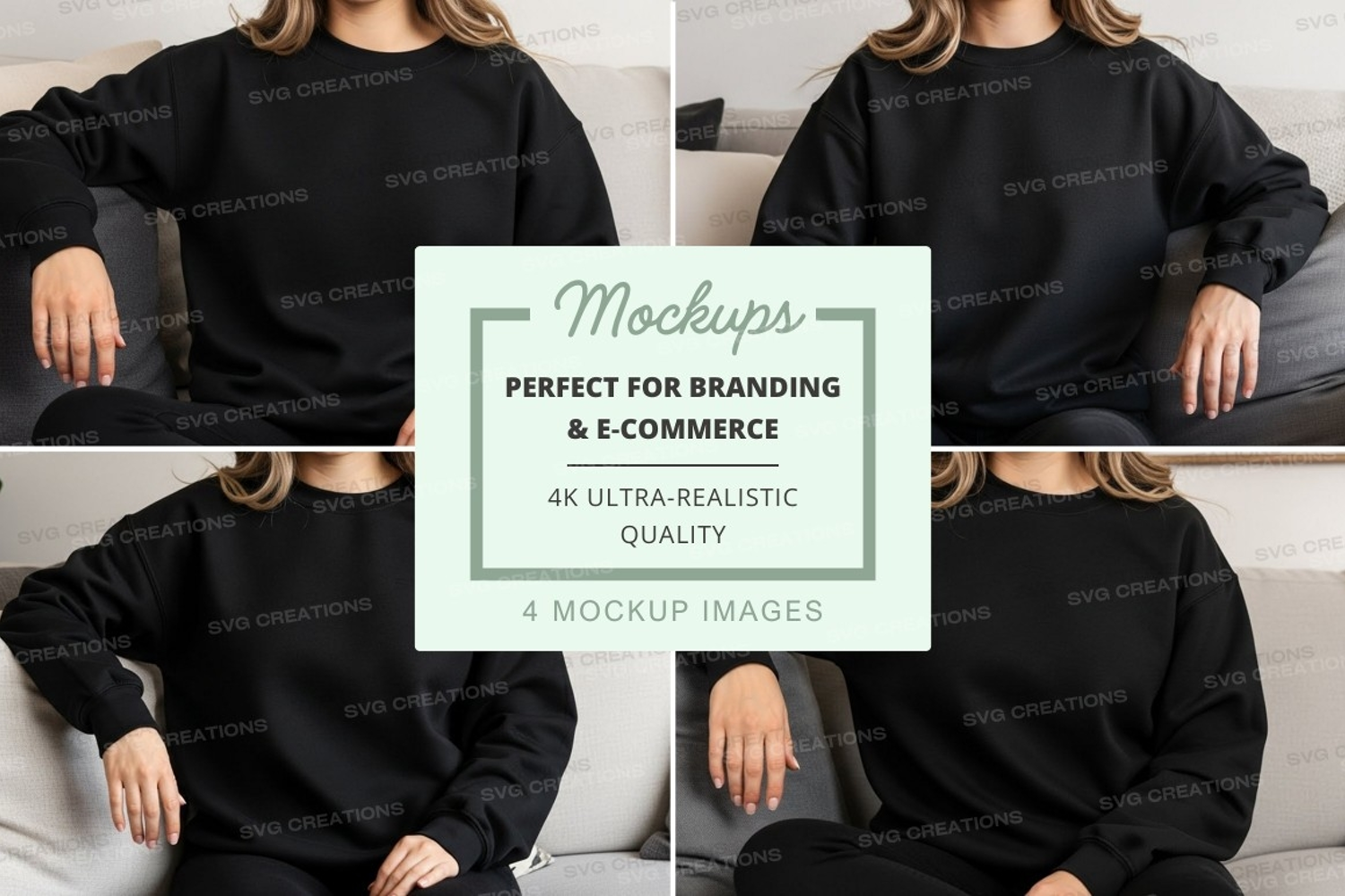 Fashion Sweatshirt Mockup Casual Wear Black Sweatshirt Indoor Photography White Couch