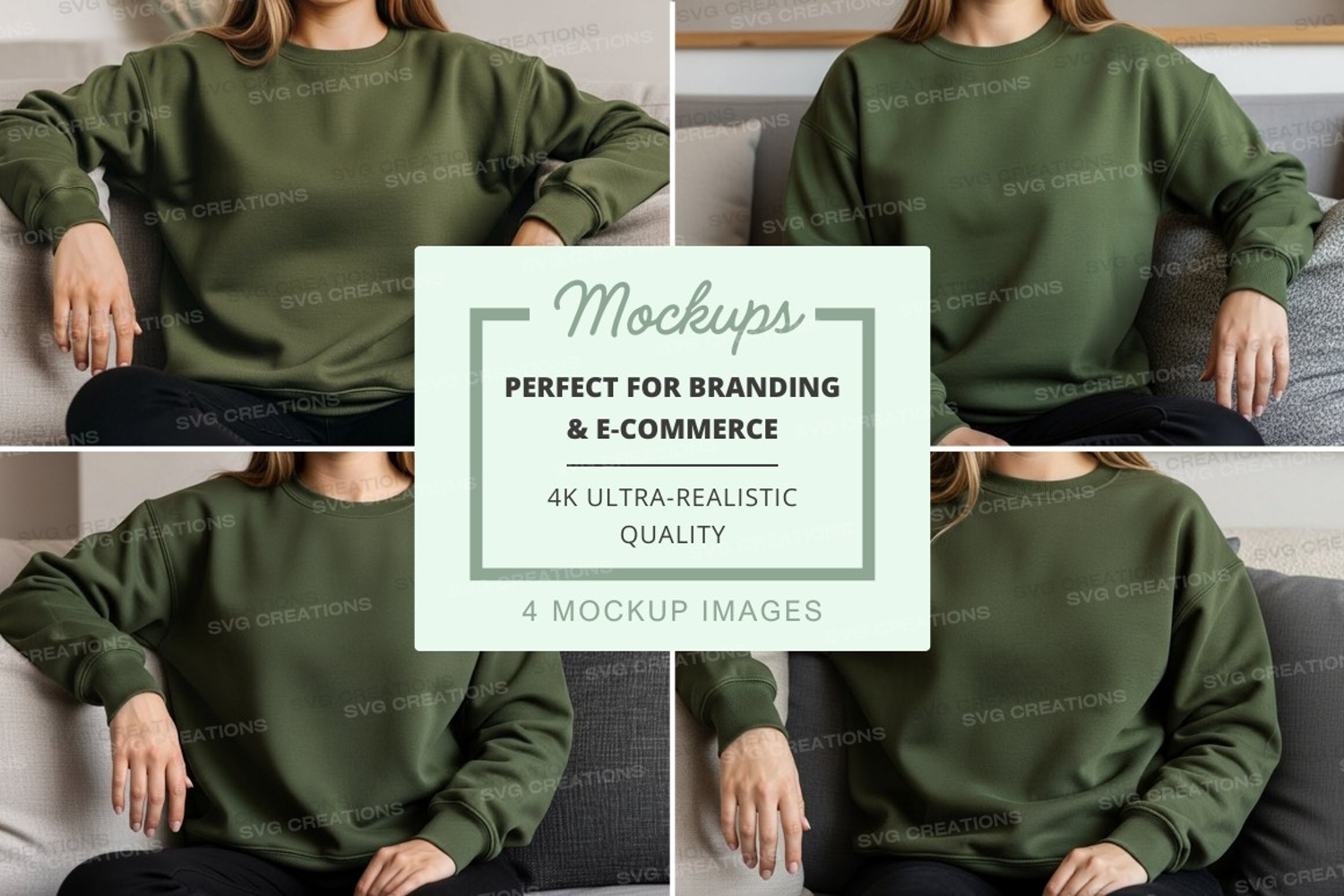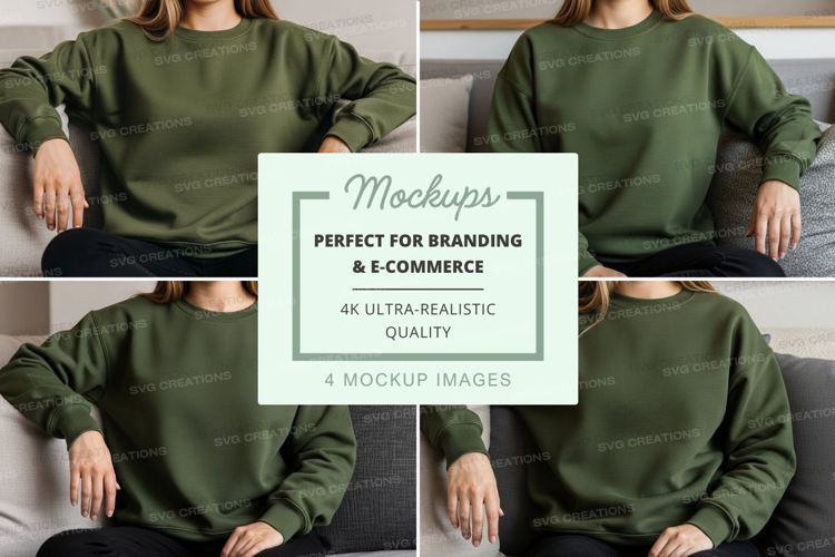 Mockup Model Front View Side View Back View Top View Couch Casual Wear Sweatshirt Design Green Sweatshirt