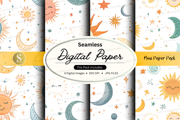 Sun Birds Celestial Digital Paper Seamless Moon Jpeg Stars 300 Dpi