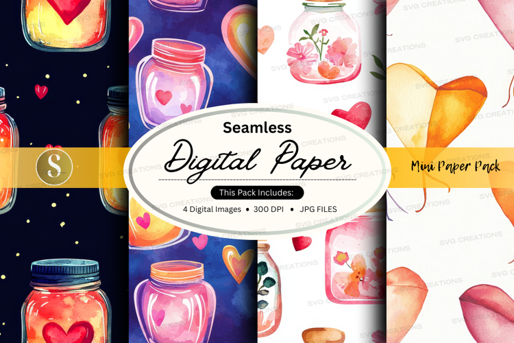 Hearts Flowers Digital Paper Seamless Jpeg 300 Dpi Digital Images Mason Jars