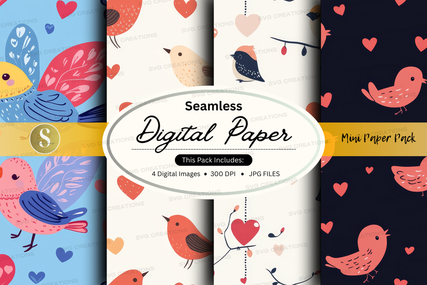 Hearts Birds Digital Paper Seamless Patterns Scrapbooking Card Making 300 Dpi Jpeg Files