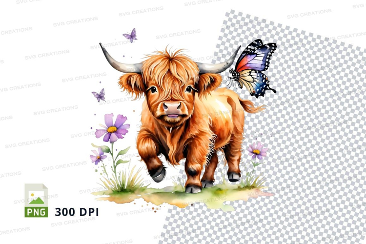 Similar Design Products to Cute highland cow with butterflies clipart png
