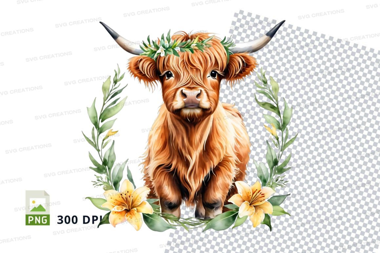 Nature Clipart Png Floral Design Watercolor Art 300 Dpi Animal Illustration Floral Crown Highland Cow