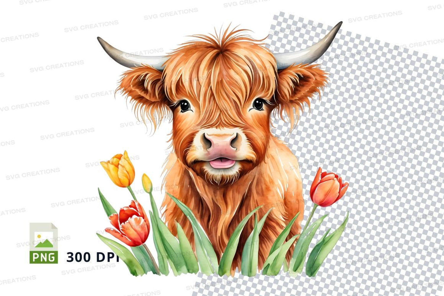 Similar Design Products to Cute highland cow with tulips clipart png