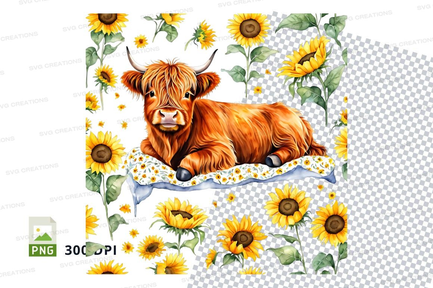 Similar Design Products to Cute highland cow with sunflowers clipart png