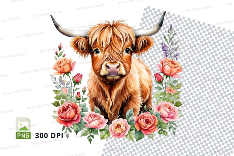 Illustration Flowers Clipart Png Roses Cow 300 Dpi Highland Cow