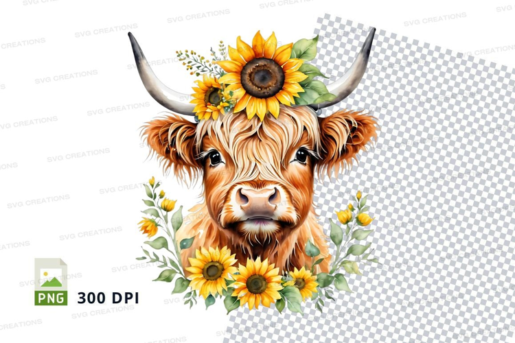 300 Dpi Animal Clipart Floral Crown Cow Illustration Png Format Checkered Background Highland Cow Sunflowers