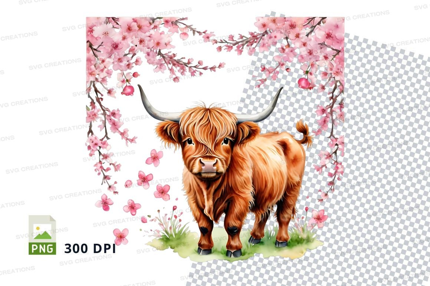 Similar Design Products to Highland cow with cherry blossoms clipart png