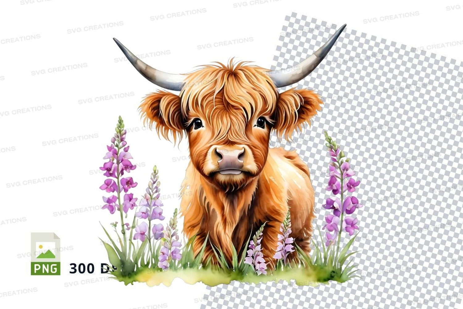 Animal Flowers Clipart Horns Purple Flowers Png Fur Cow Checkered Background Highland Cow