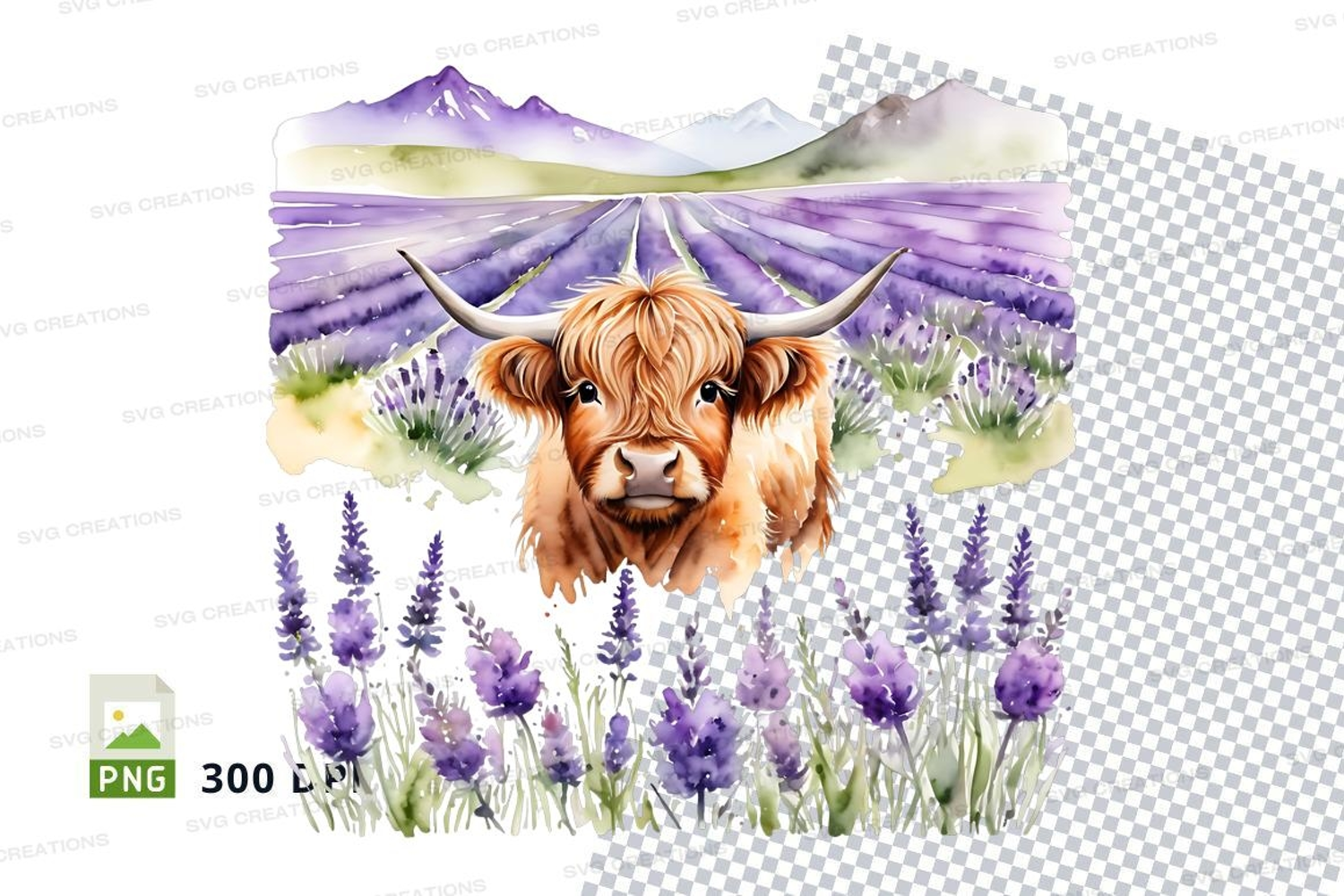Similar Design Products to Highland cow in lavender field clipart png