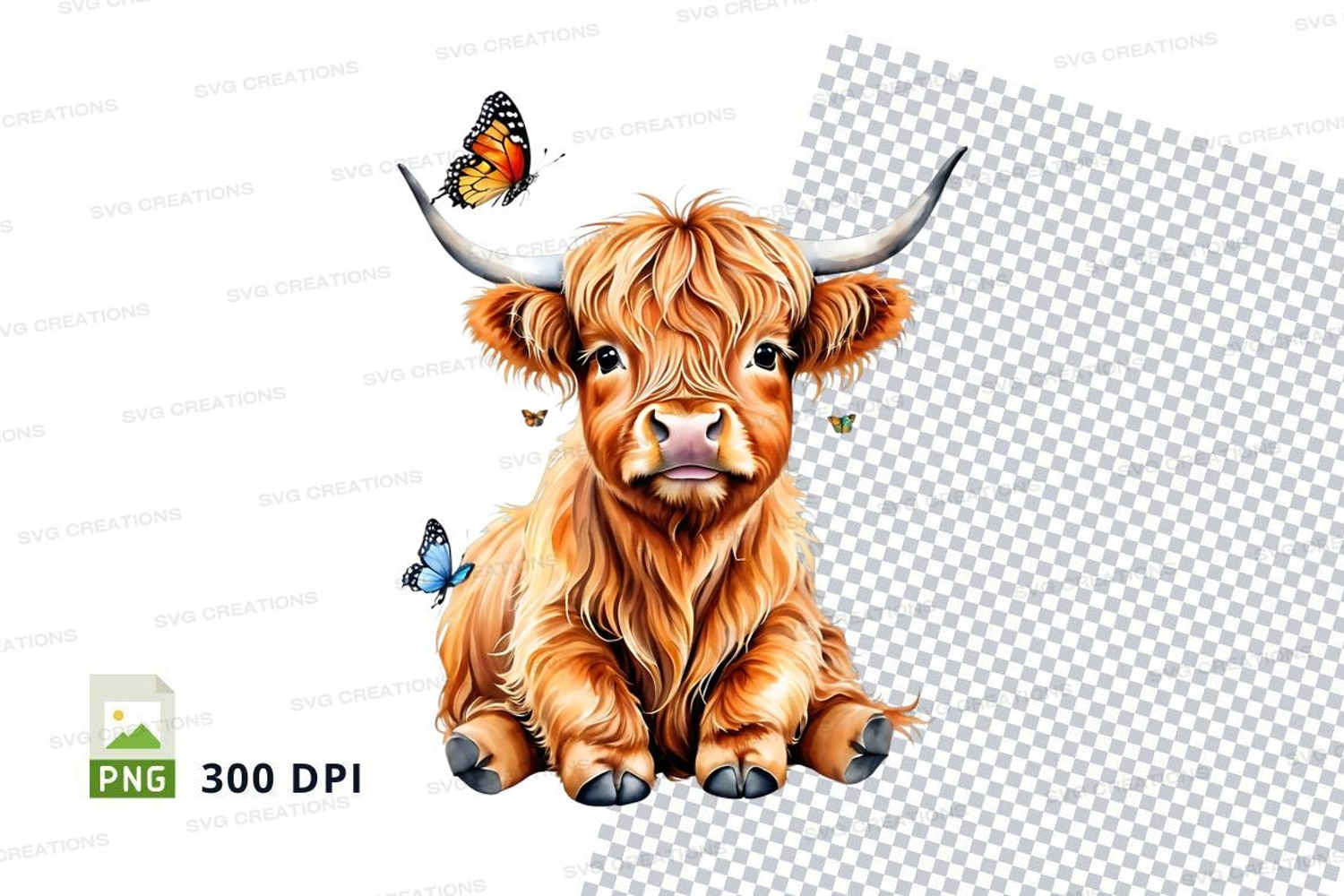 Similar Design Products to Cute highland cow calf with butterflies clipart png