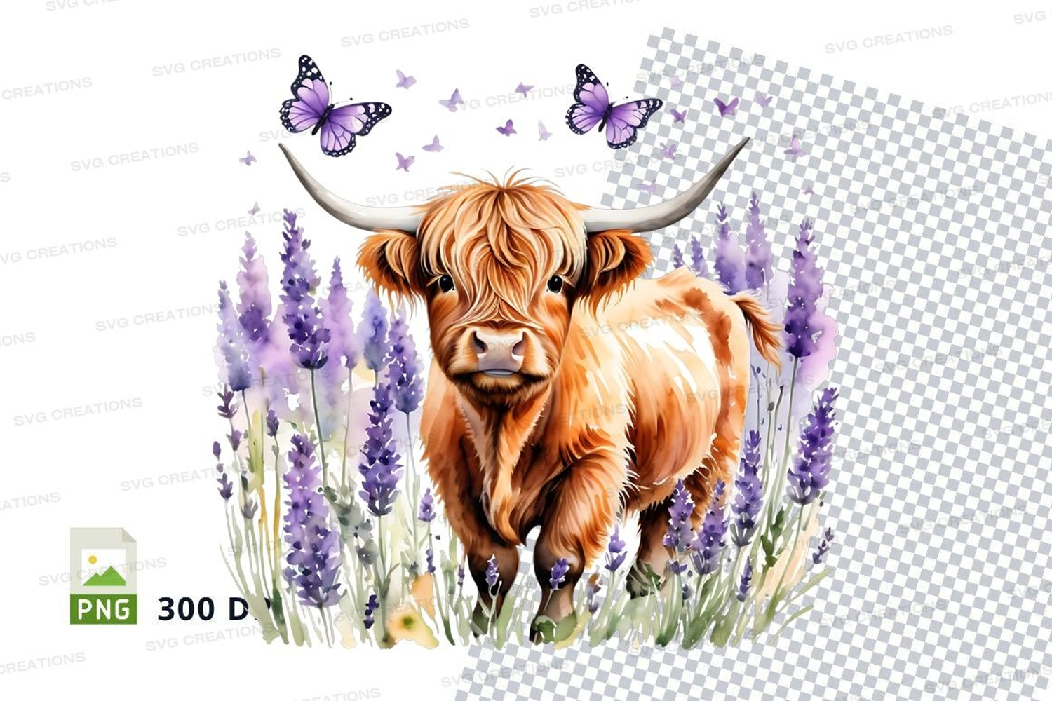 Decorative Lavender Clipart Png Butterflies Pastoral Highland Cow