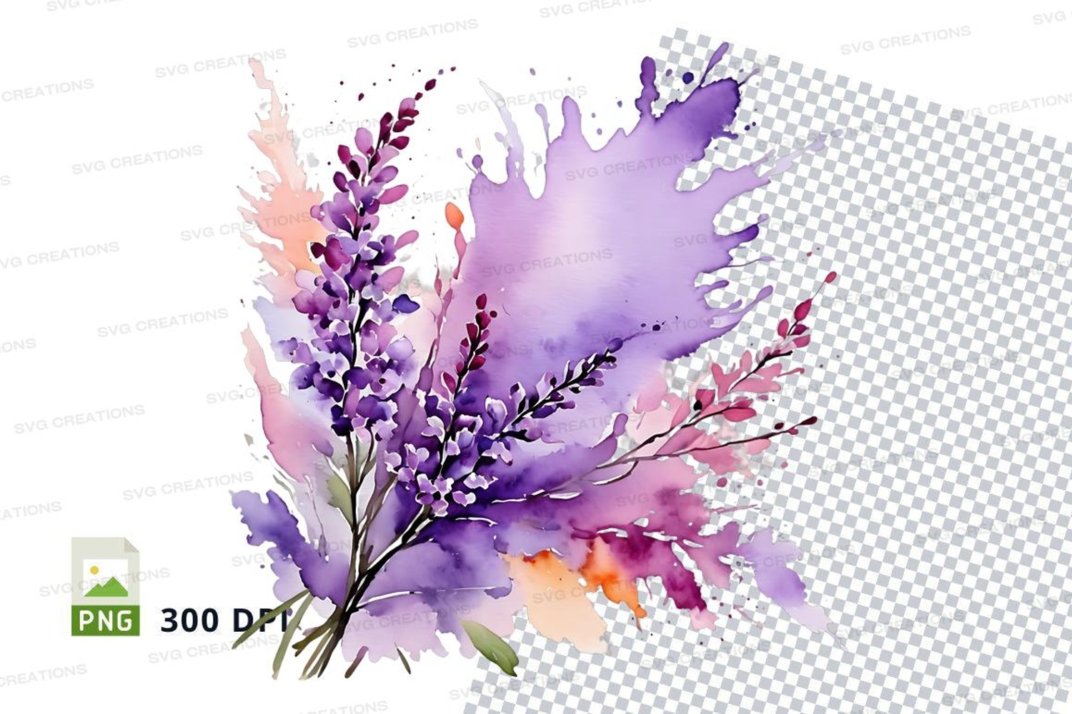 Watercolor lavender clipart png