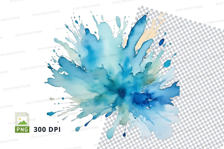 Blue watercolor splash clipart png example image 1