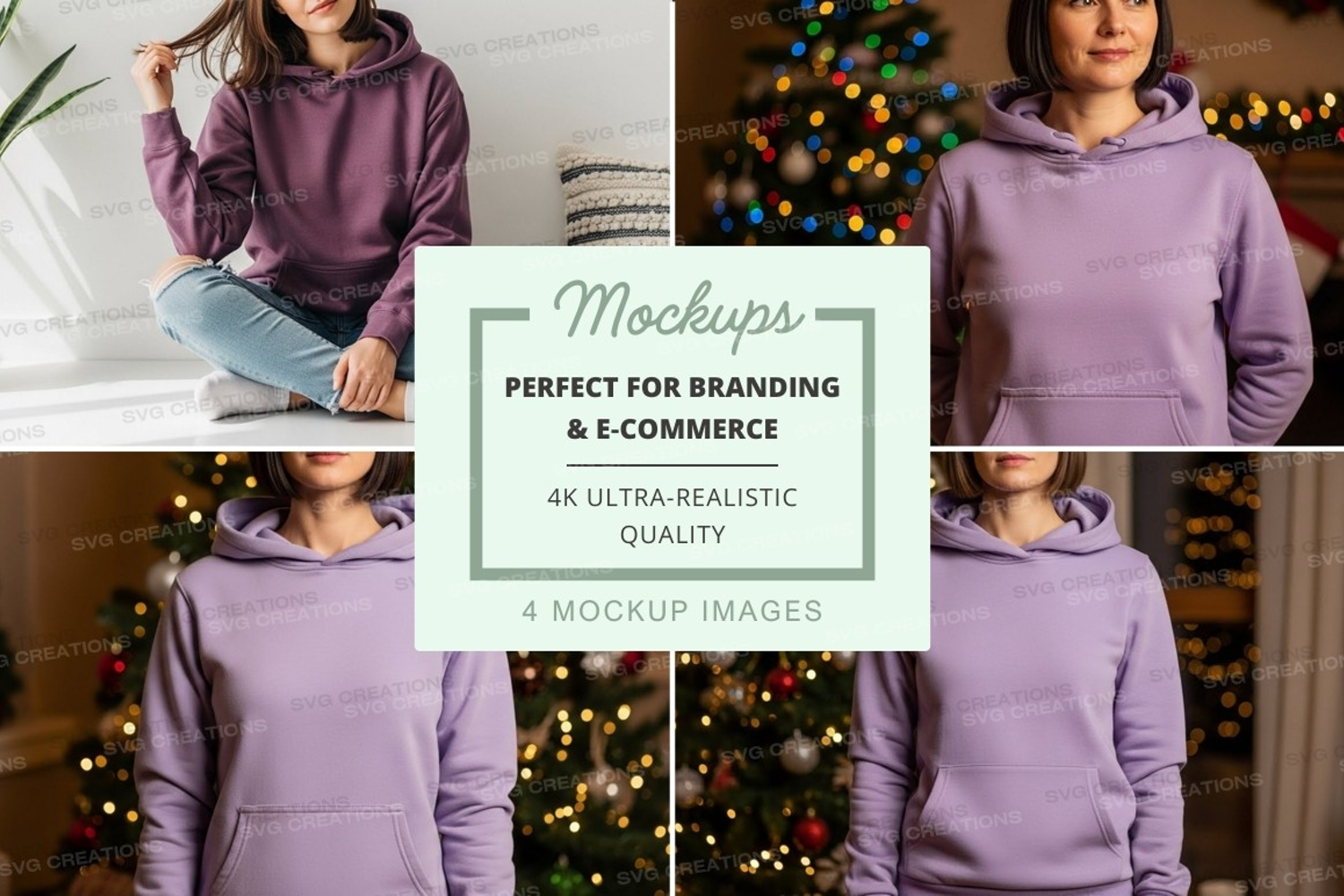 Similar Design Products to Purple hoodie mockup with christmas tree background