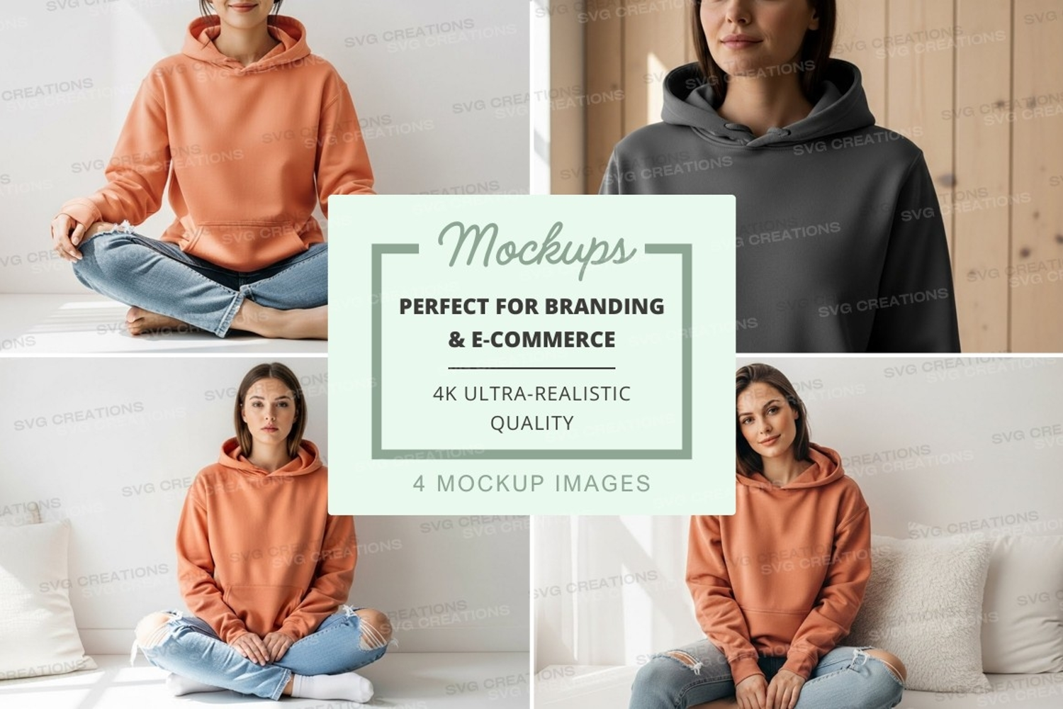 Mockup Orange Gray Sweatshirt Hoodie Unisex Neutral Background Hooded Relaxed Pose