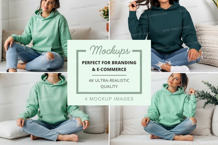 Smile Casual Green Mockup Model Phone Couch Relaxed Hoodie Hairbrush