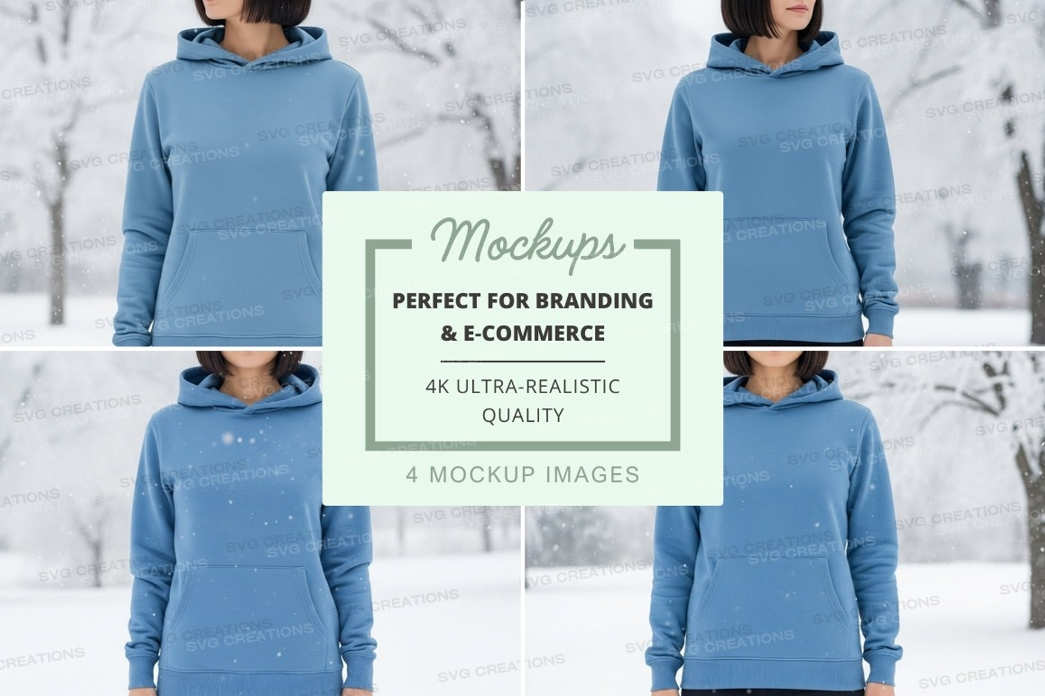 Snow Mockup Winter Outdoor Light Blue Hoodie Hooded Sweatshirt
