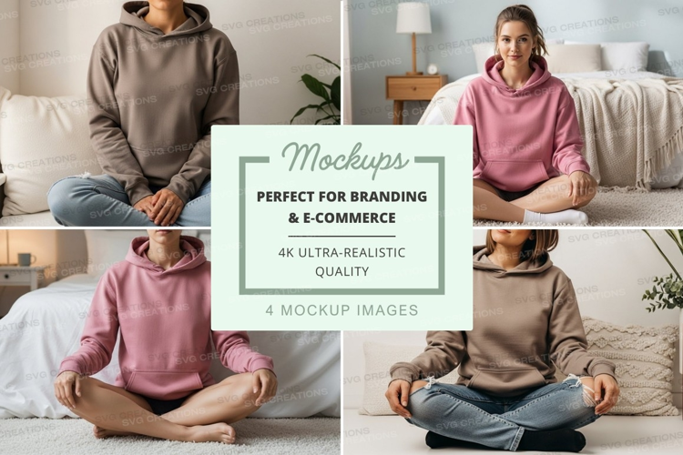 Women Mockup Meditation Relaxation Comfort Bedroom Hoodie Hooded Sweatshirt