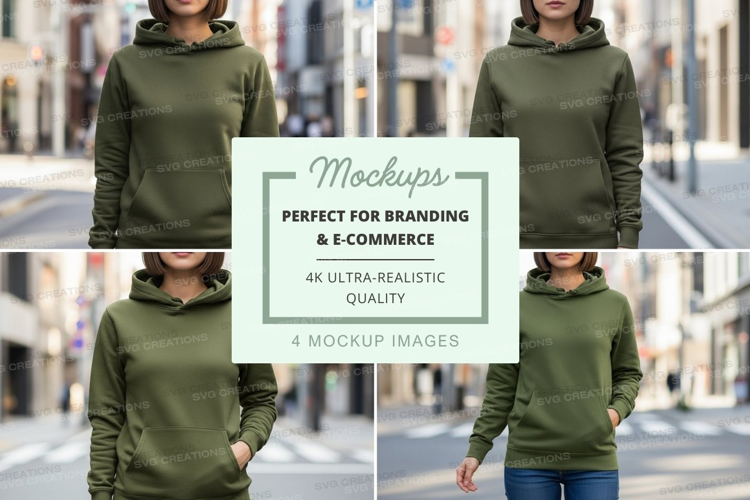 Mockup Hoodie Olive Green Hooded Sweatshirt Street Scene City Background