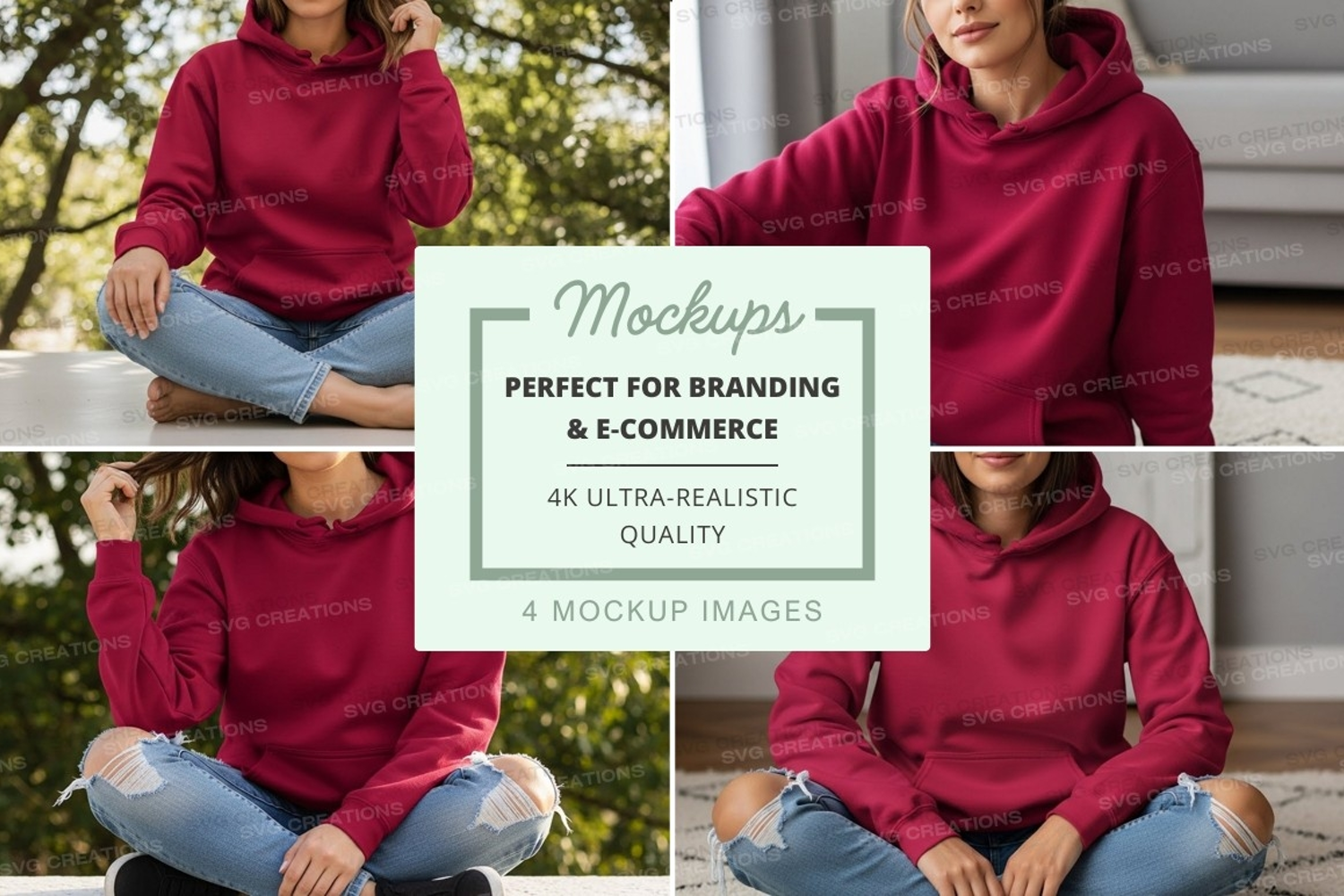 Similar Design Products to Red hooded sweatshirt mockup with model