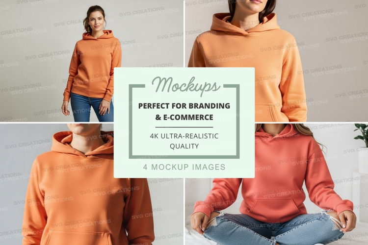 Mockup Apparel Orange Peach Coral Hoodie Hooded Sweatshirt Women's Clothing