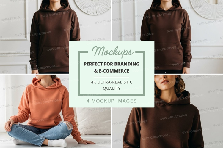 Mockup Model Brown Orange Indoor Hoodie Hooded Sweatshirt
