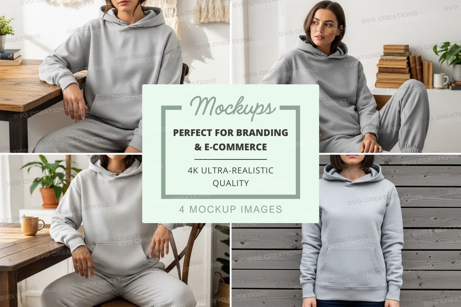 Mockup Home Decor Models Light Gray Hooded Sweatshirt Casual Wear Comfortable Clothing Indoor Setting