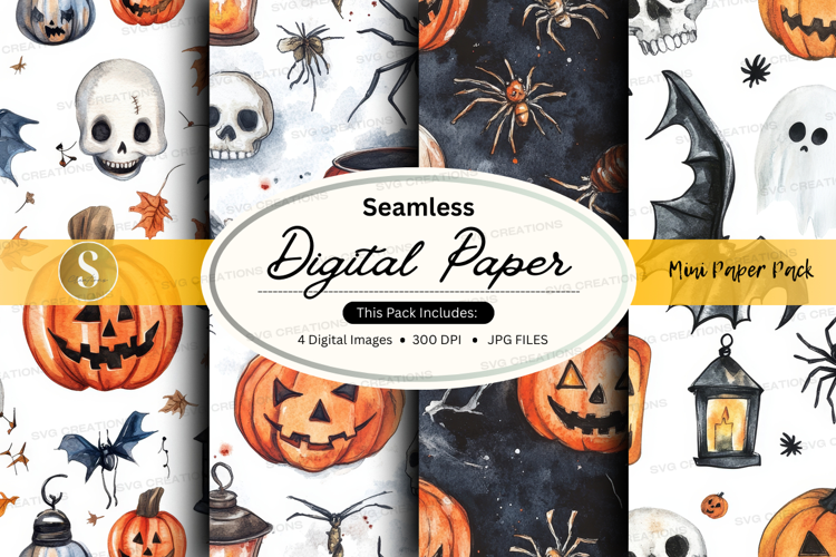 Halloween Digital Paper Scrapbooking Pumpkins Digital Art Crafting Bats Skulls Spiders