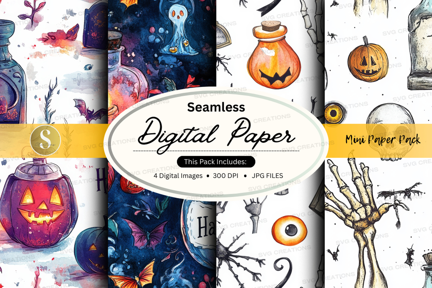Digital Paper Spooky Seamless Pattern Potion Digital Images Jack-o'-lantern Halloween Seamless Digital Paperhalloween