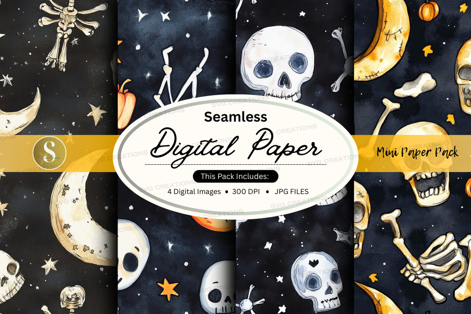 Digital Paper Seamless Bones Stars 300 Dpi Skulls Mardi Gras Jpg Files Dark Background